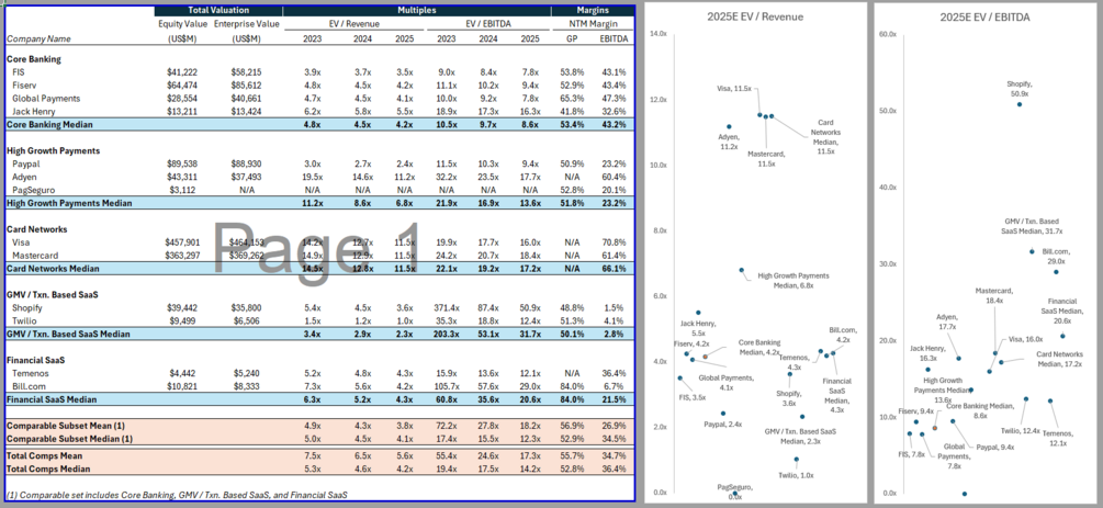 Public comps tells you (1) What valuation this industry vertical can go out at at maturity (2) Trends on if investors are willing to pay more or less for this type of asset (see: fintech in 2020-2024)